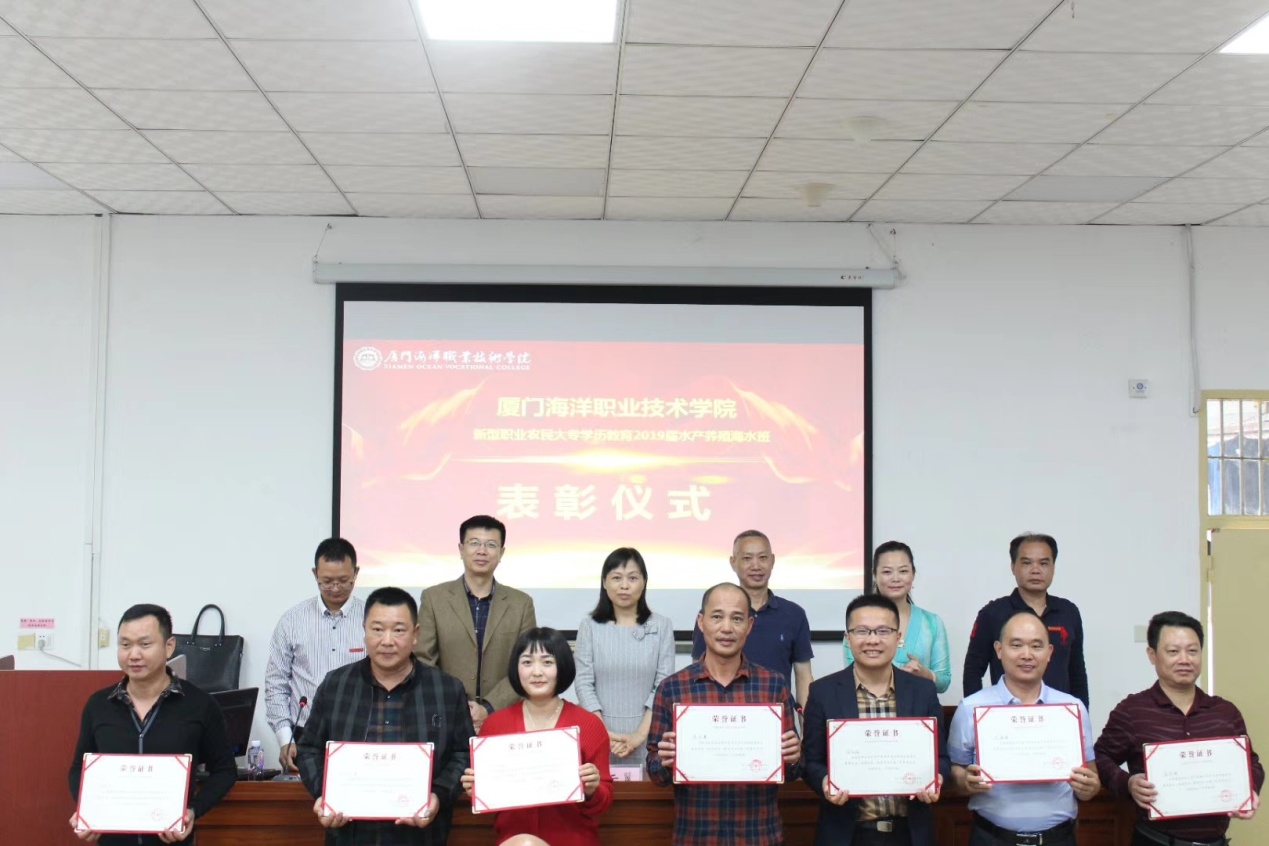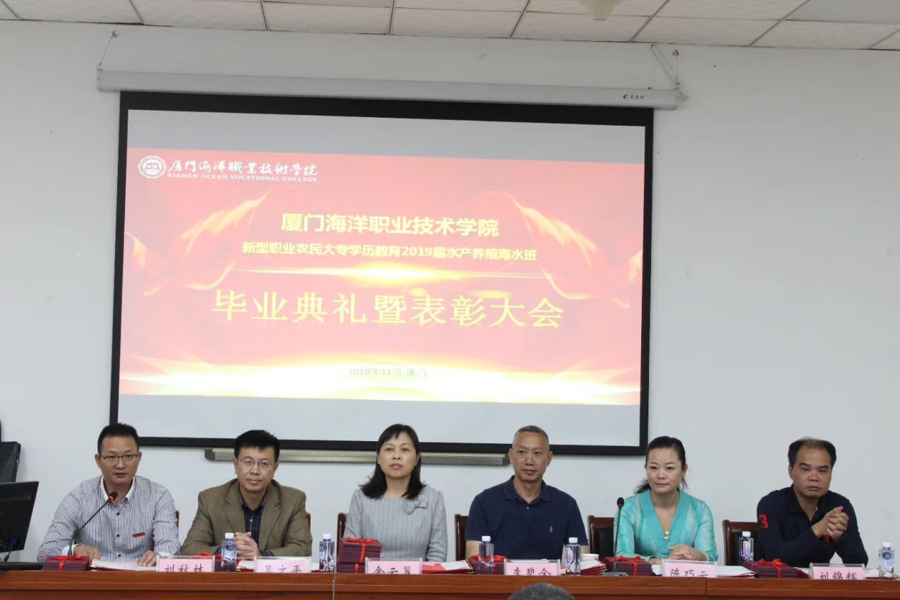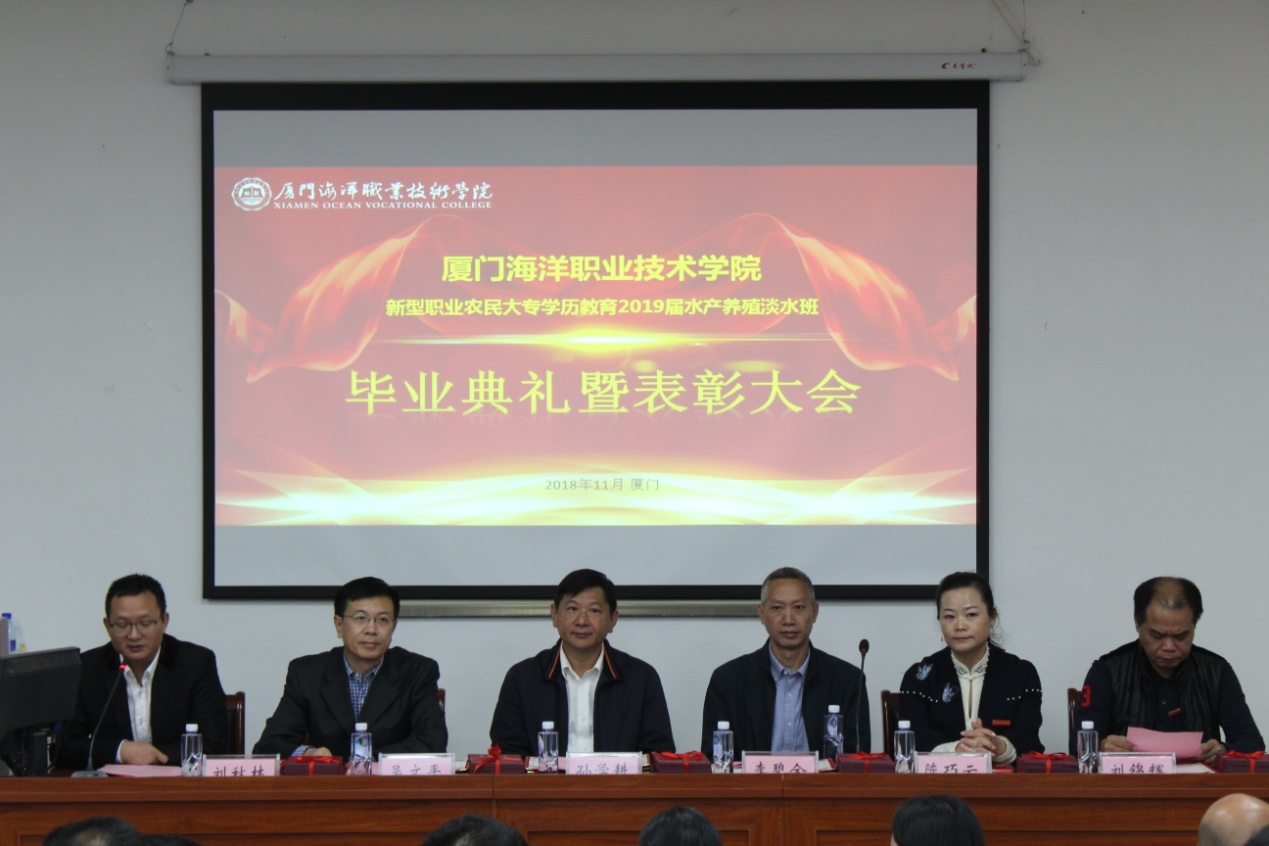 2018年11月16日和28日,我院在思明校区分别举行2019届新型职业农民专科学历教育海水养殖班、淡水养殖班毕业典礼。学院余云翼副院长、学院党委委员、孙学耕副院长,行政党总支书记、财务处吴文平处长、生物技术系李碧全主任、继续教育学院全体老师及部分课任教师出席毕业典礼,2019届新型职业农民水产养殖专科学历教育的近300名学员参加毕业典礼。毕业典礼由继续教育学院刘秋林院长主持。