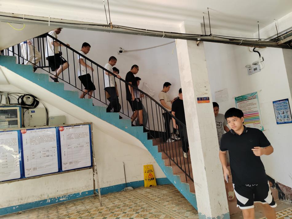 随着急促的警报声响起,全体培训学员迅速放下手中的书本,用手、袖口或湿巾捂住口鼻,在工作人员的引导下,按照预先规划的逃生路线,从各楼层宿舍迅速有序地向操场疏散集合。整个过程中,学员们保持了高度的纪律性和自我防护意识,展现了良好的应急能力。