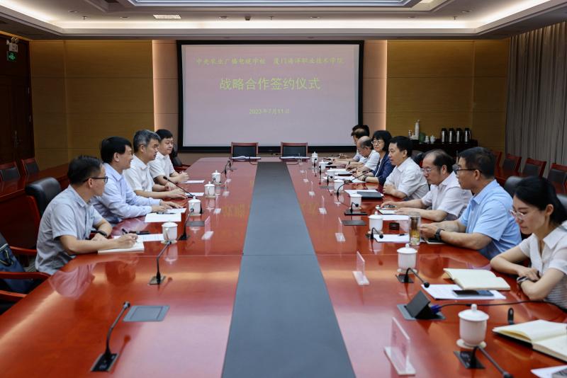 7月11日,我校与中央农业广播电视学校战略合作签约仪式在京举行,我校党委书记陈一端、院长陈昌萍出席签约仪式。中央农广校党委书记刘明国主持签约仪式,陈昌萍院长与中央农广校常务副校长胡永万分别代表双方签署战略合作协议。中央农广校领导班子成员和部分处室(部门)负责人、我校党政办、继续教育学院(乡村振兴学院)相关负责人参加活动。
